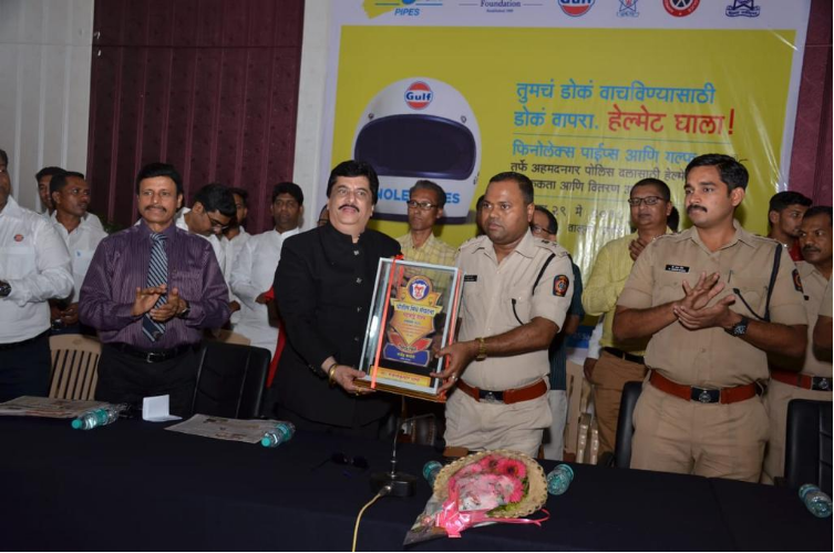 फिनोलेक्स पाईप्स आणि गल्फ घर यांच्या तर्फे पोलीस दलासाठी हेल्मेट वाटप