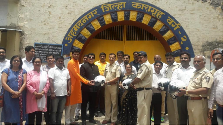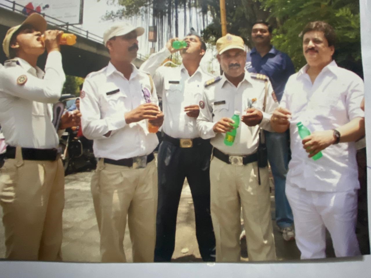 संघटने तर्फे पोलिसांना हेल्मेट चे वाटप करताना.