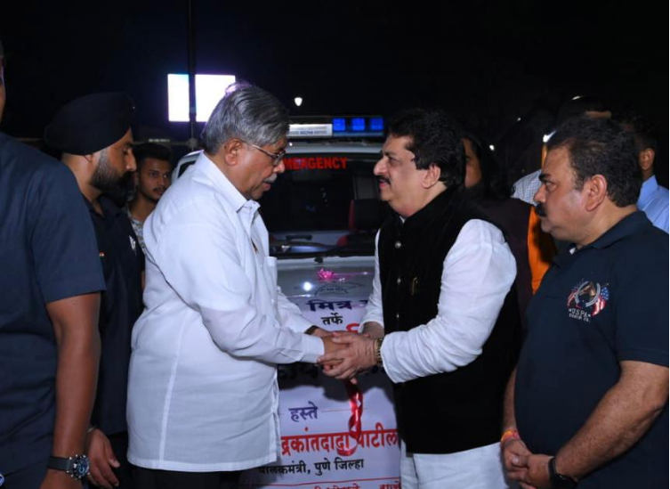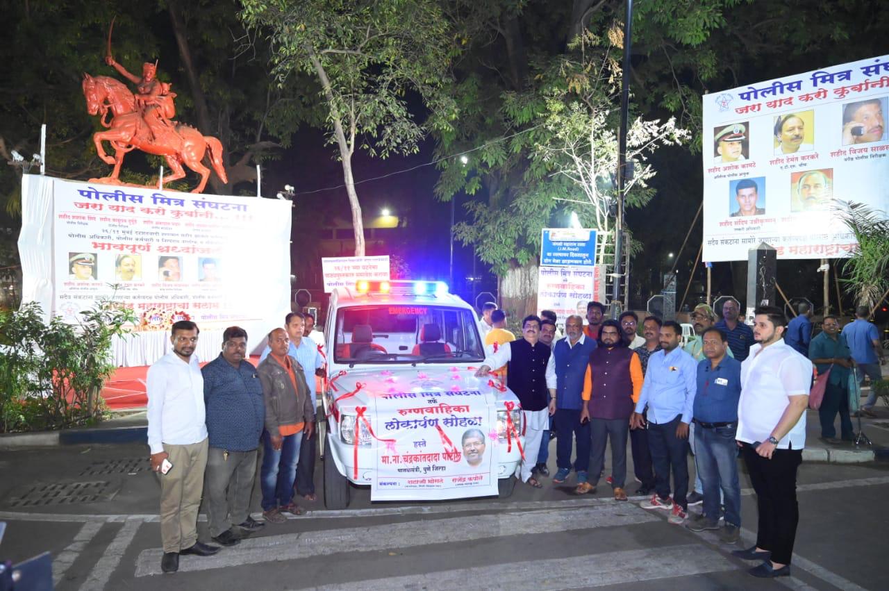 पोलिस मित्र संघटनेच्या वतीने पालक मंत्री चंद्रकांत दादा पाटील यांच्या हस्ते रुग्णवाहिकेचे लोकार्पण