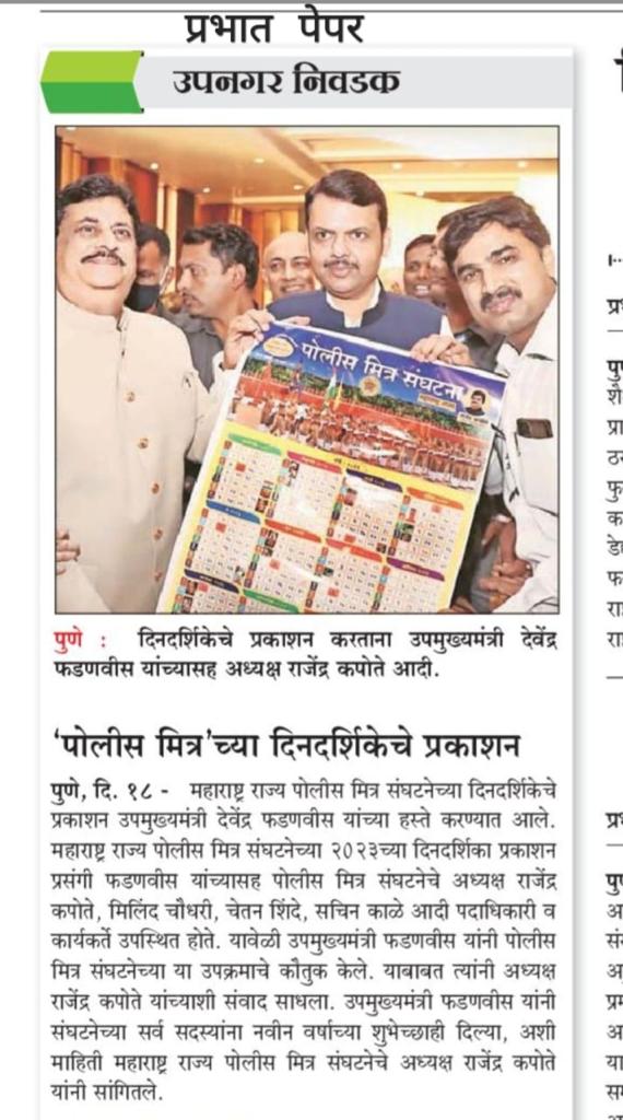 पोलीस मित्र संघटनेच्या दिनदर्शिकेचा शुभारंभ उपमुख्यमंत्री देवेंद्र फडवणीस यांच्य हस्ते झाला