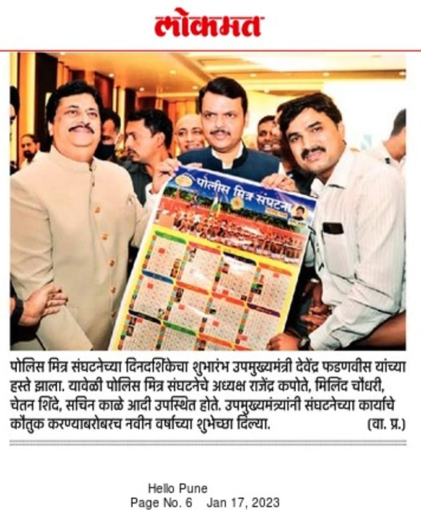 महाराष्ट्र राज्य पोलीस मित्र संघटनेच्या सन २०२२ च्या दिनदर्शिकेचा प्रकाशन समारंभास मा.आमदार मोहनदादा जोशी, संघटनेचे संस्थापक अध्यक्ष श्री.राजेंद्र कपोते, संघटनेचे पदाधिकारी व कार्यकर्ते उपस्थित होते.