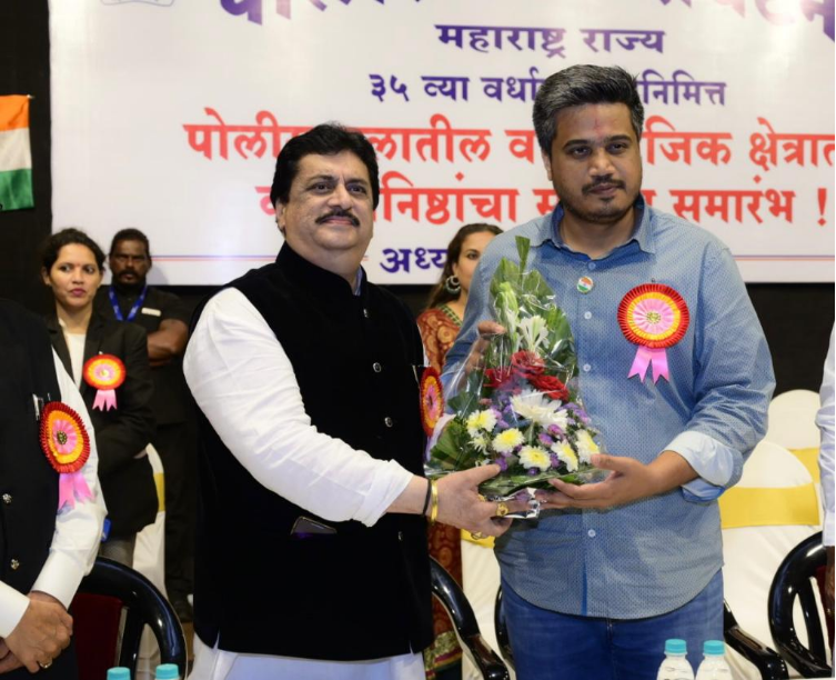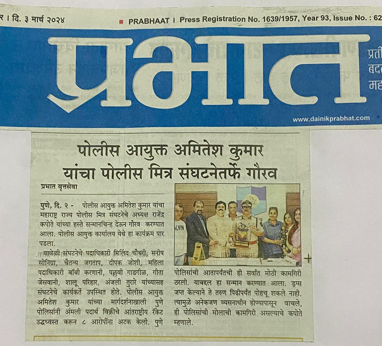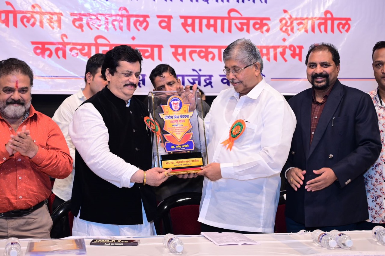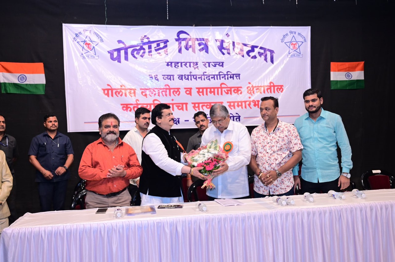 पुणे पुलिस आयुक्त अमितेश कुमार को महाराष्ट्र राज्य पुलिस मित्र संघ के अध्यक्ष राजेंद्र कपोटे ने सम्मानित किया। कार्यक्रम