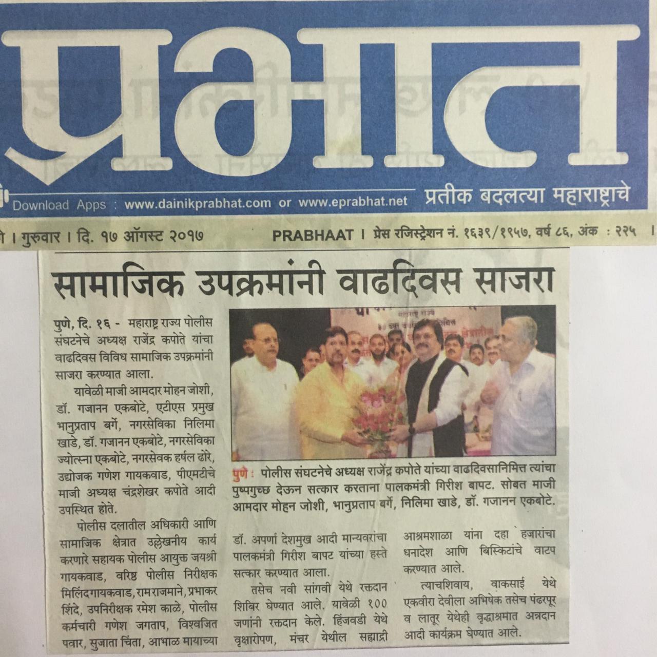 प्रभात वृत्तपत्रात आलेली वर्धापनाची बातमी.