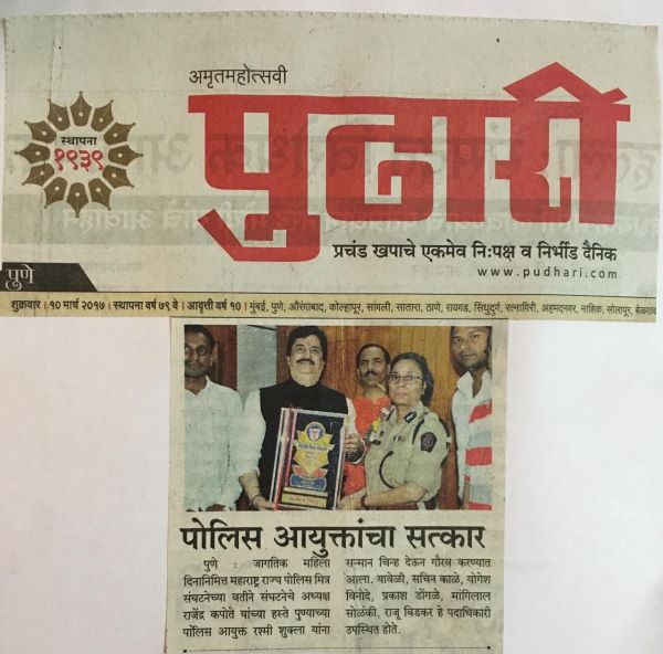 जागतिक महिला दीना निमित्त पुण्याच्या पोलीस आयुक्त रश्मी शुक्ल मॅडम यांचा सत्कार करण्यात आला.