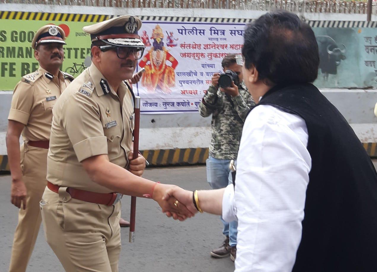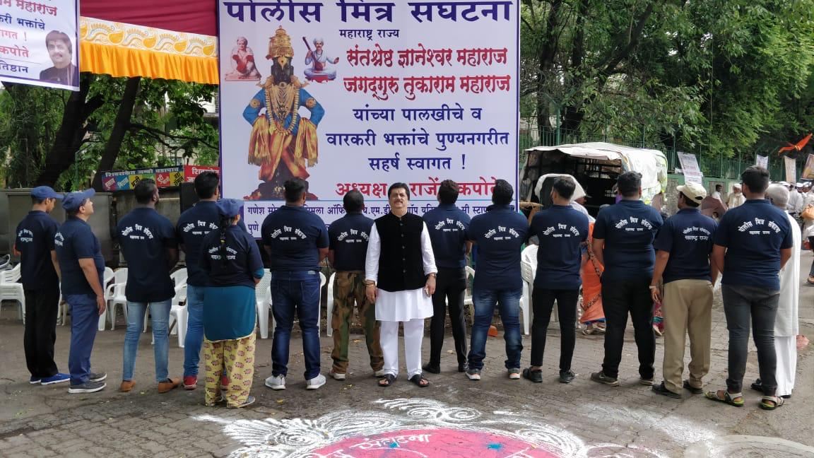 पोलीस मित्र संघटनेतर्फे पालख्यांचे स्वागत