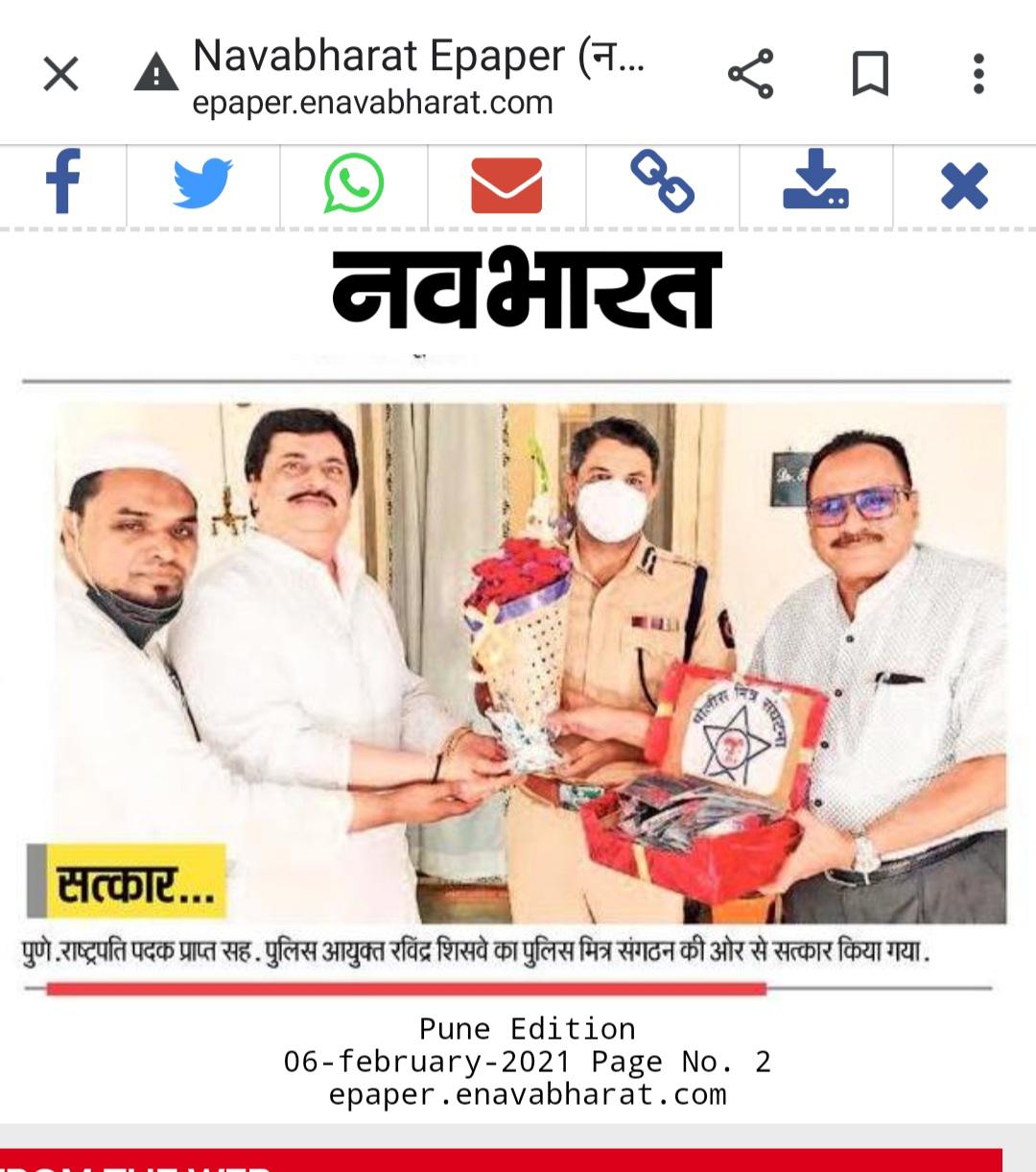 सहा पोलीस आयुक्त श्री रवींद्र शिसवे यांना राष्ट्रपती पदक मिळाल्याबद्दल सत्कार करताना.