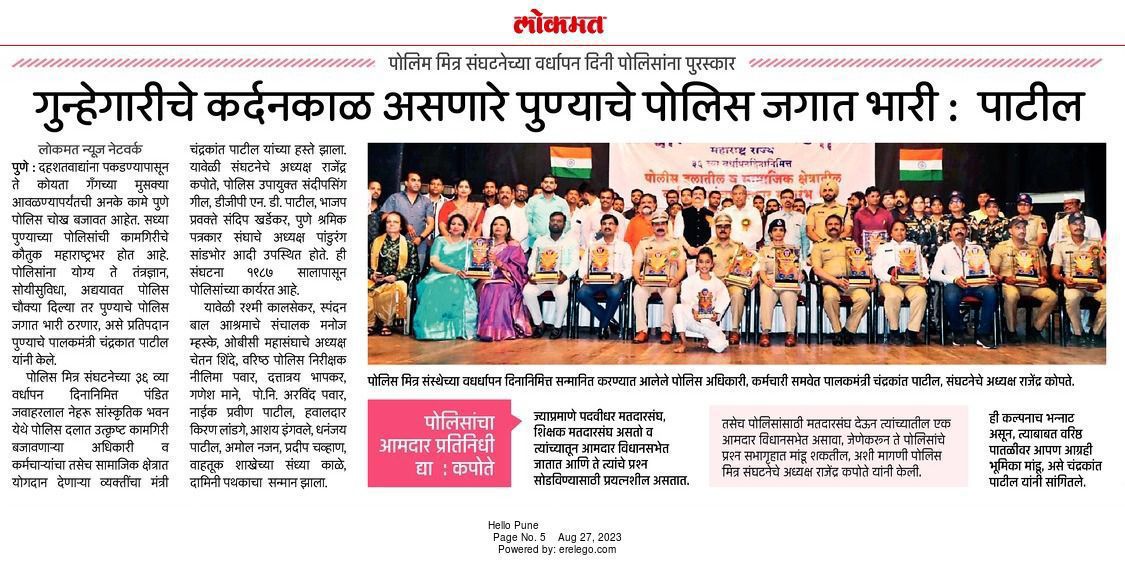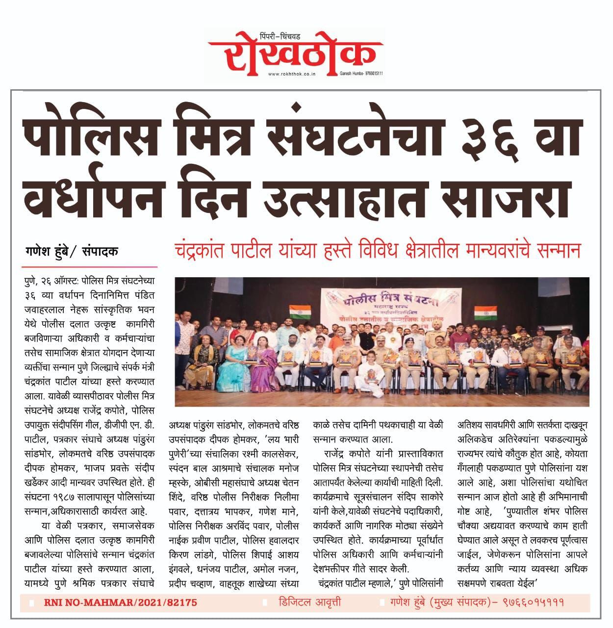 पोलिस मित्र संघटनेचा ३६ वा वर्धापन दिन उत्साहात साजरा