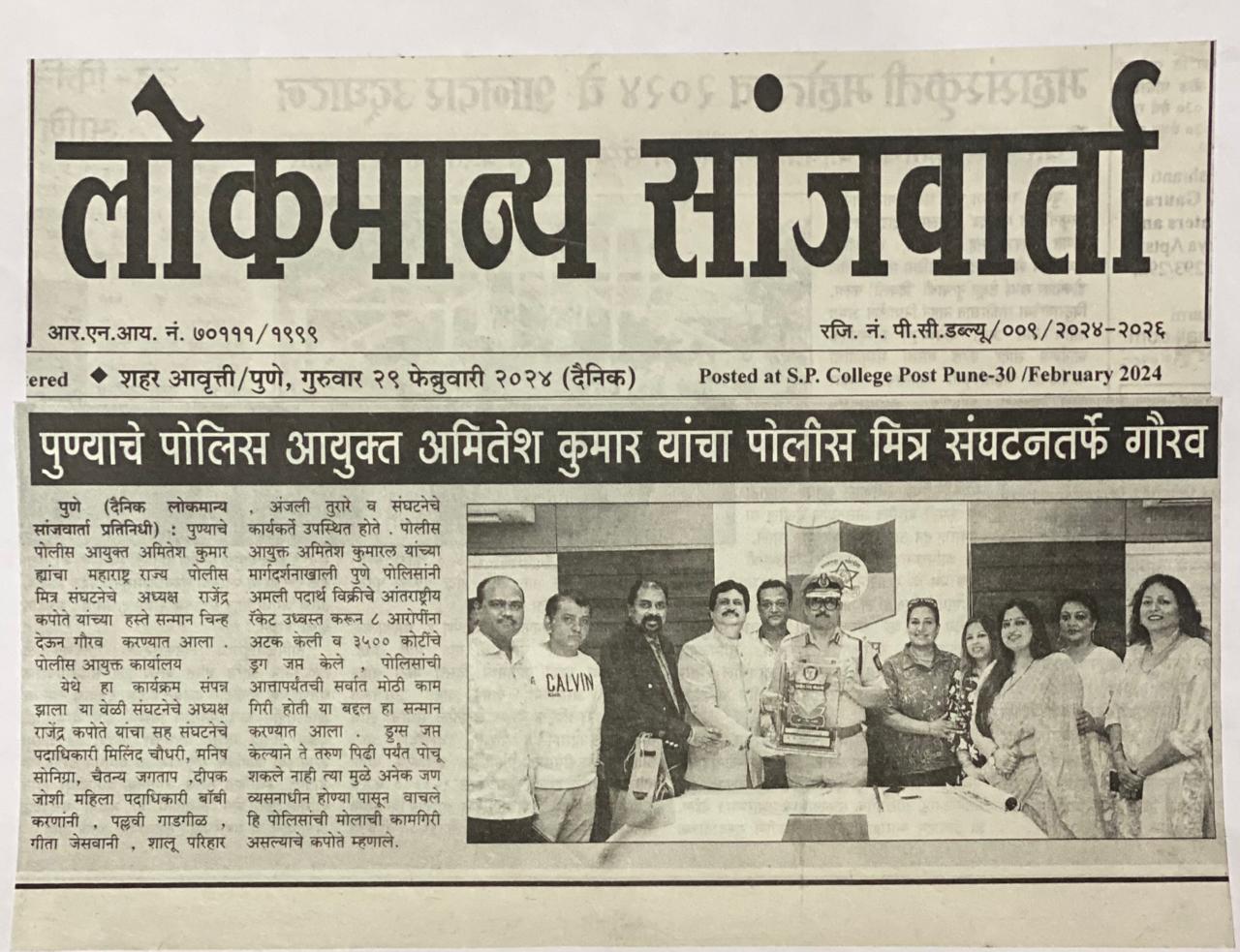 पुण्याचे पोलिस आयुक्त अमितेश कुमार यांचा पोलीस मित्र संघटनतर्फे गौरव