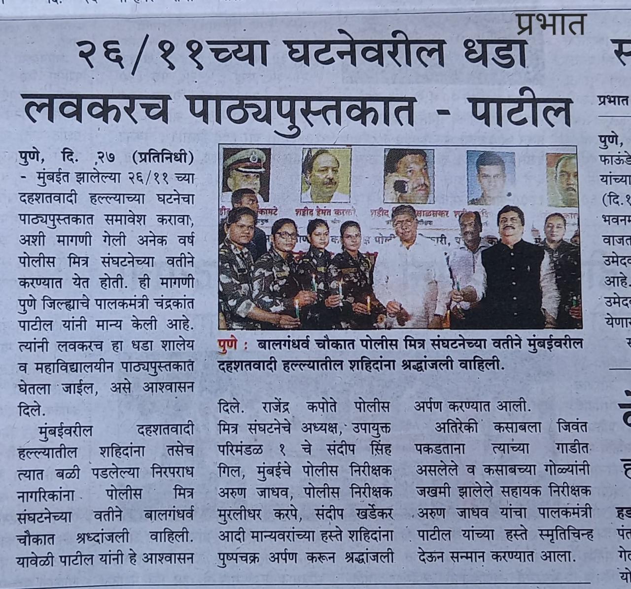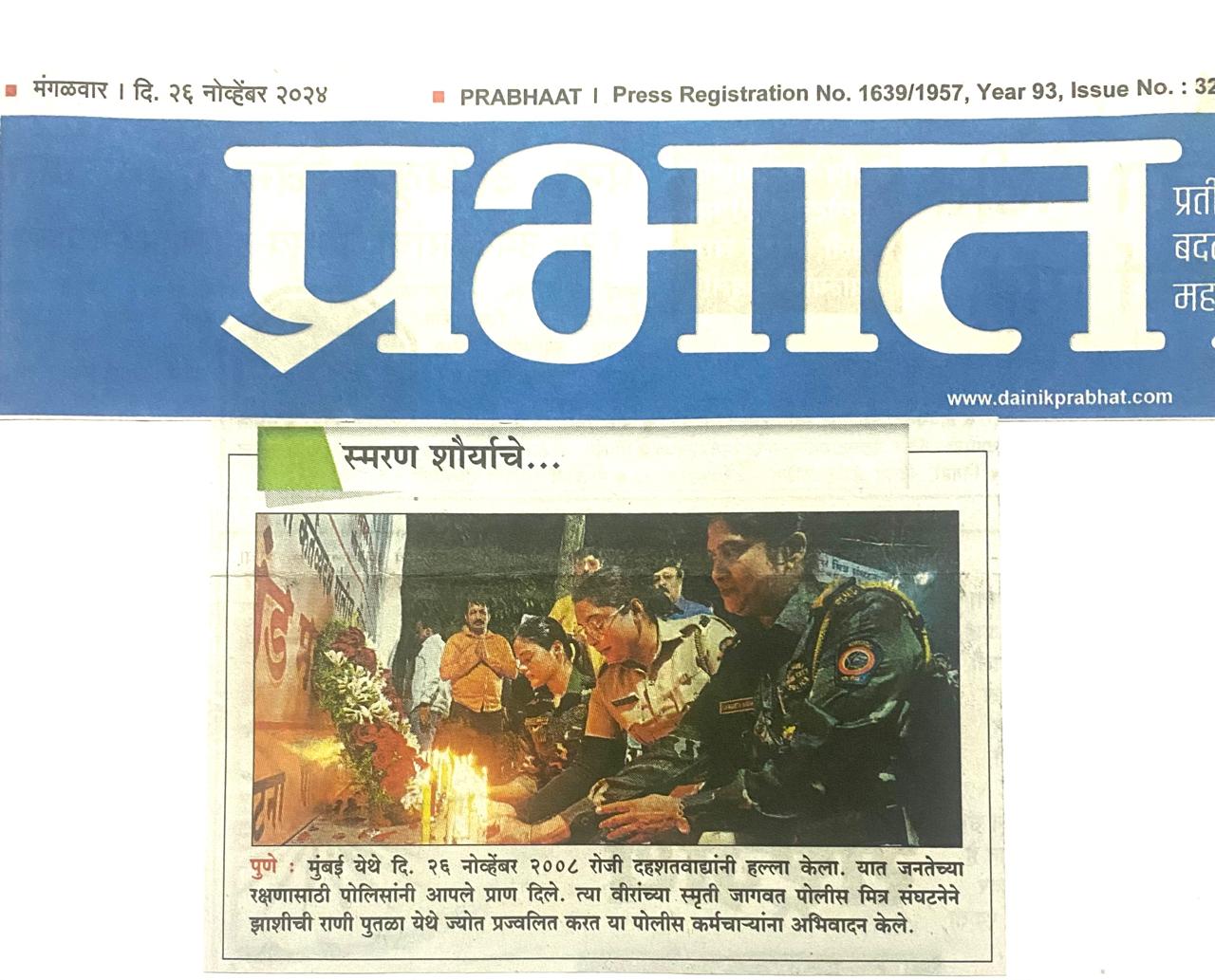 मुंबईतील दहशतवादी हल्ल्यात शहीद झालेले कर्तव्यदक्ष पोलीस अधिकारी, कर्मचारी आणि निरपराध नागरिकांना सोमवारी २६/११च्या पूर्वसंध्येला पोलीस मित्र संघटनेतर्फे अभिवादन करण्यात आले.
