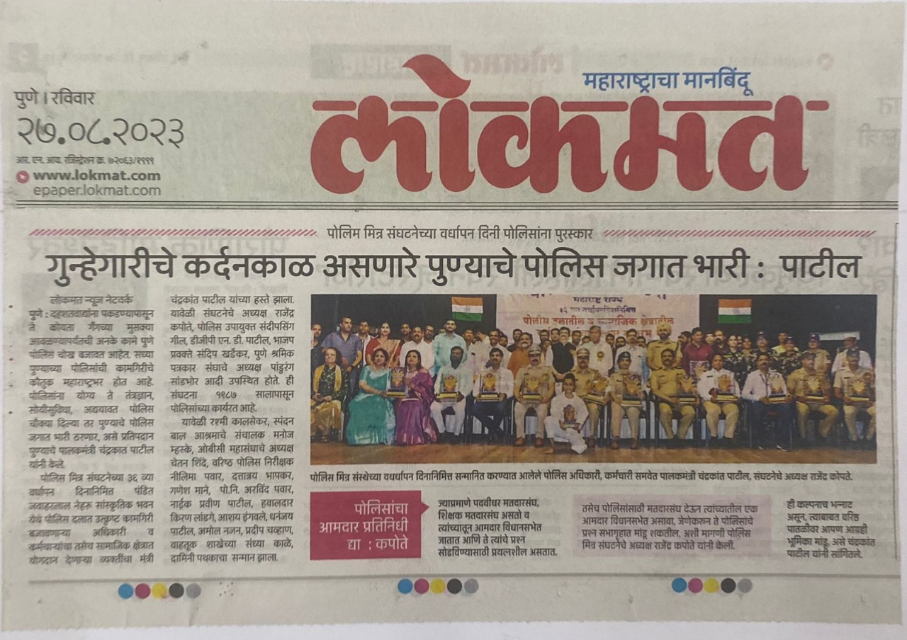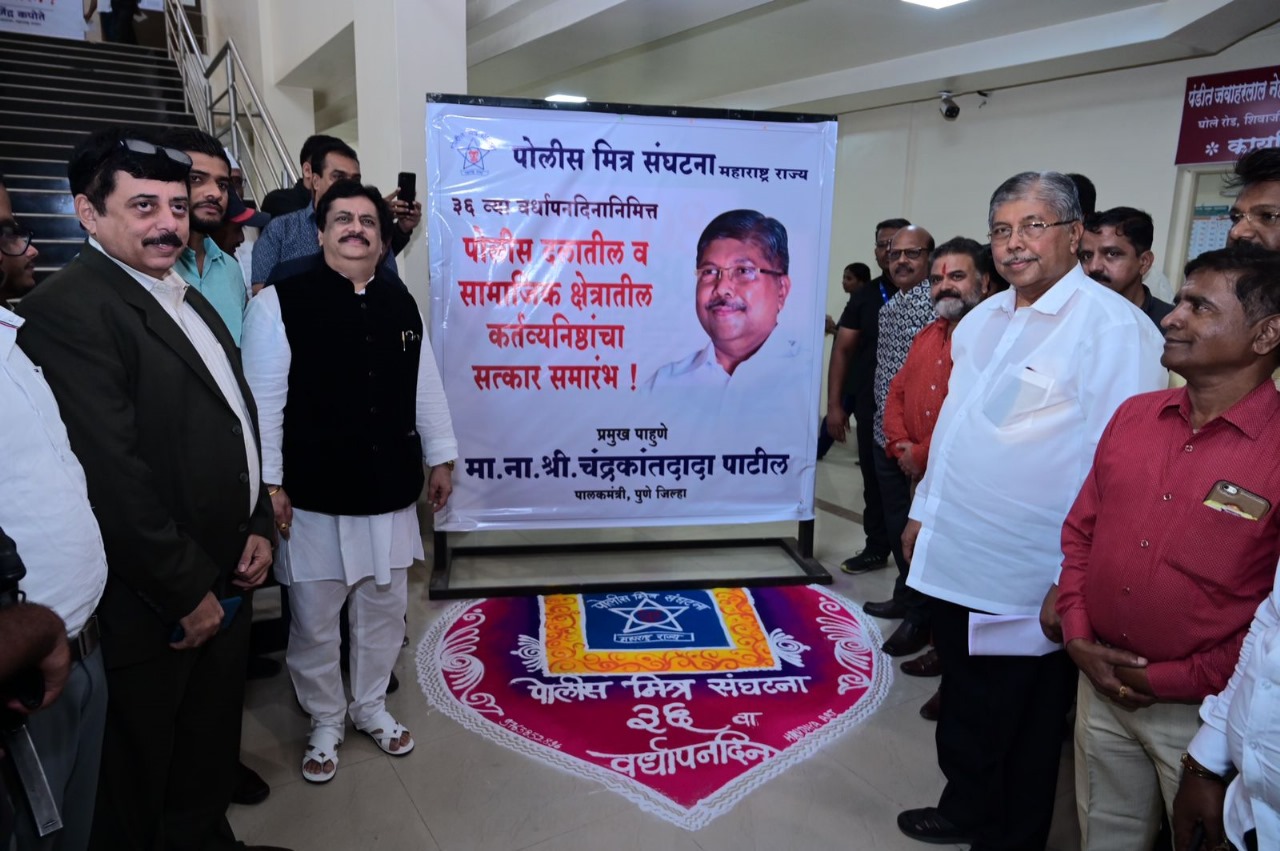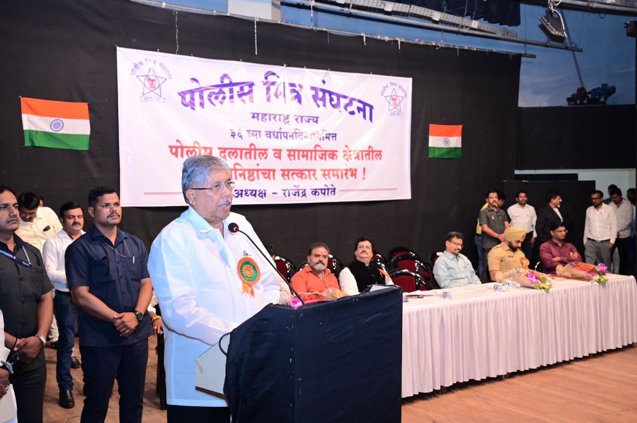 पुणे पुलिस आयुक्त अमितेश कुमार को महाराष्ट्र राज्य पुलिस मित्र संघ के अध्यक्ष राजेंद्र कपोटे ने सम्मानित किया। कार्यक्रम