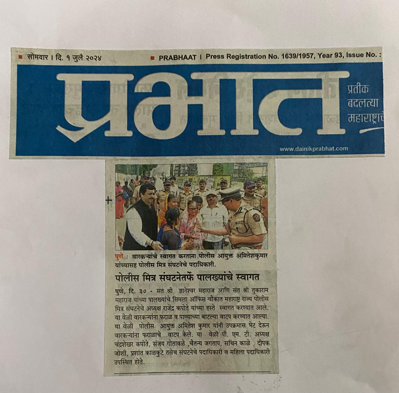 पोलीस मित्र संघटनेतर्फे पालख्यांचे स्वागत