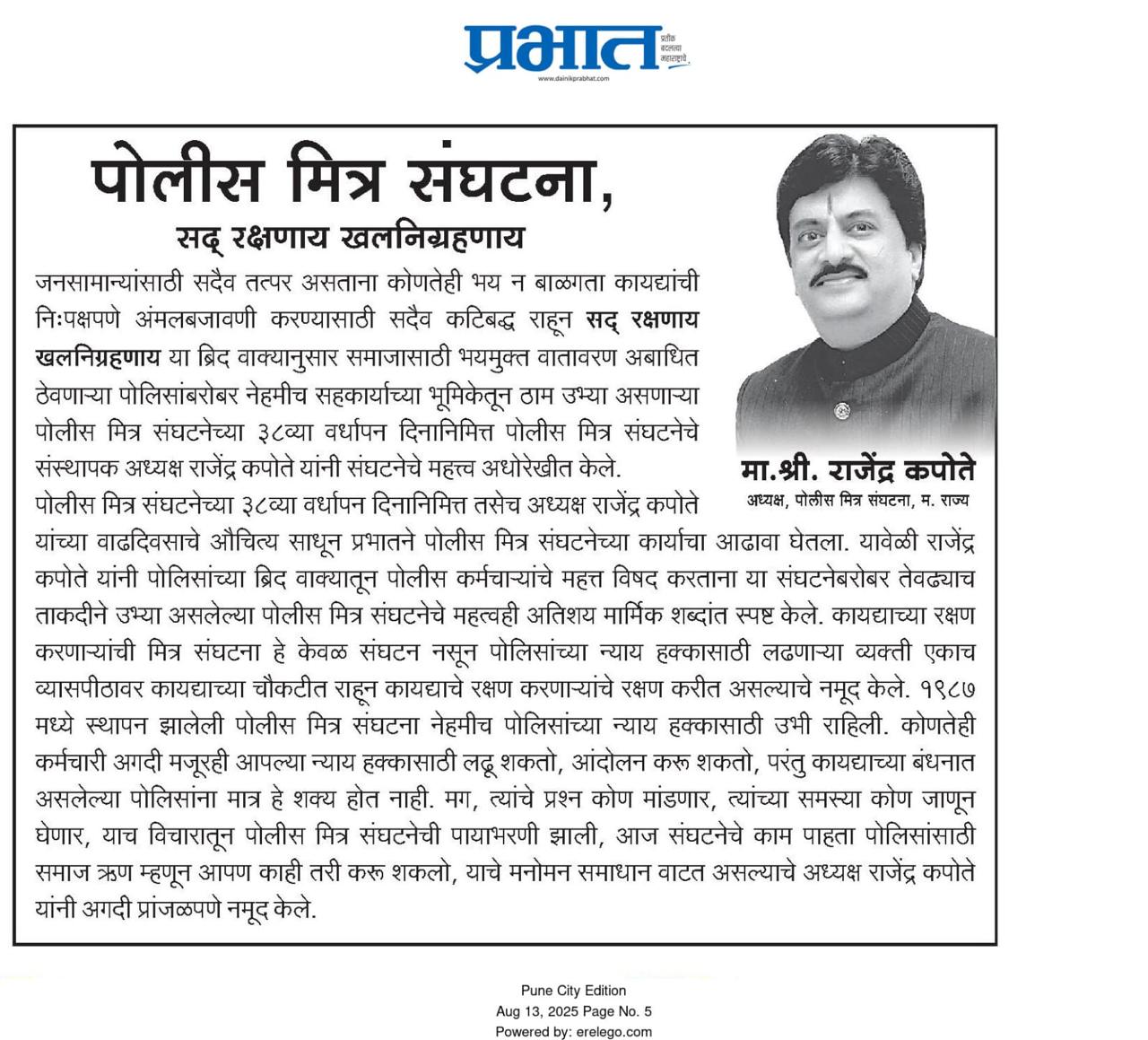 पोलिस मित्र संघटनेचा ३६ वा वर्धापन दिन उत्साहात साजरा