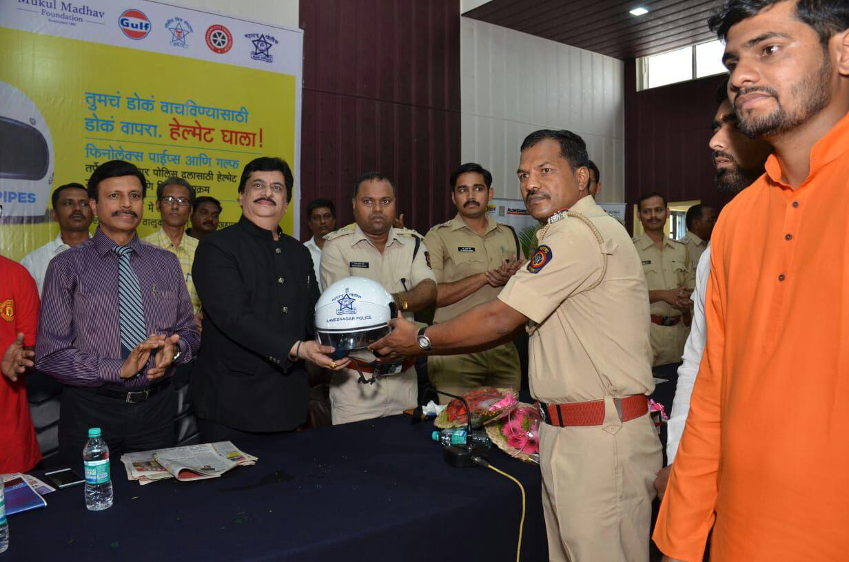 फिनोलेक्स पाईप्स आणि गल्फ घर यांच्या तर्फे पोलीस दलासाठी हेल्मेट वाटप