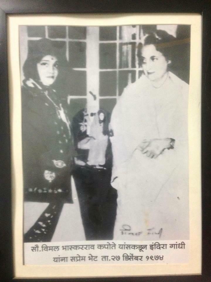 इंदिराजी गांधी यांच्या समवेत कपोते साहेबांच्या मातोश्री कैलासवासी सौ. विमल कपोते.