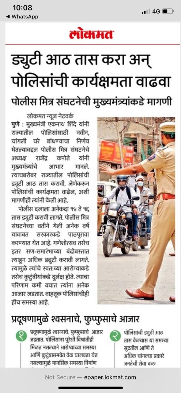 पोलिसांसाठी स्वतंत्र मतदारसंघ स्थापन करा : राजेंद्र कपोते