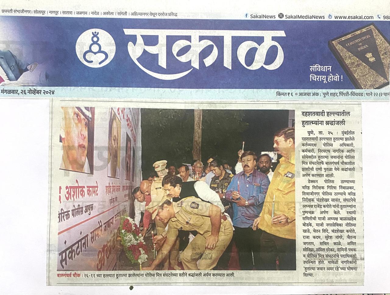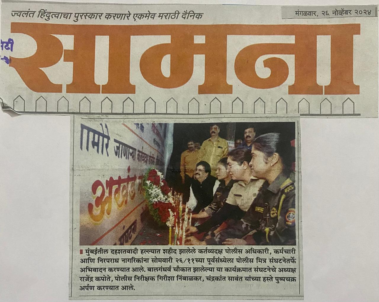 मुंबईतील दहशतवादी हल्ल्यात शहीद झालेले कर्तव्यदक्ष पोलीस अधिकारी, कर्मचारी आणि निरपराध नागरिकांना सोमवारी २६/११च्या पूर्वसंध्येला पोलीस मित्र संघटनेतर्फे अभिवादन करण्यात आले.